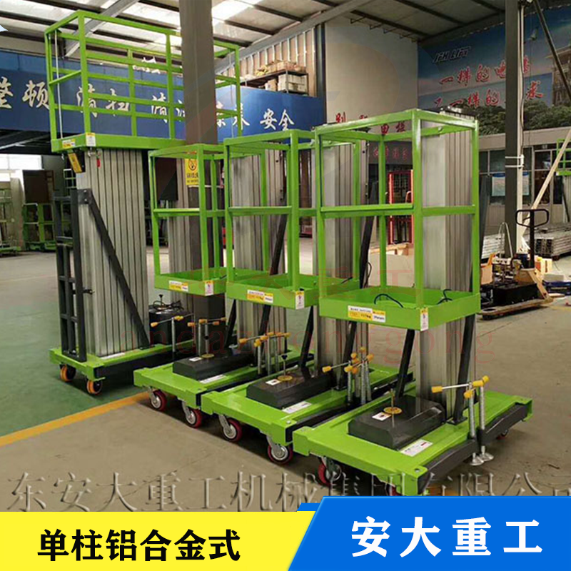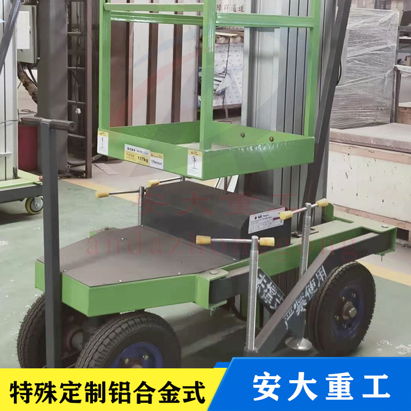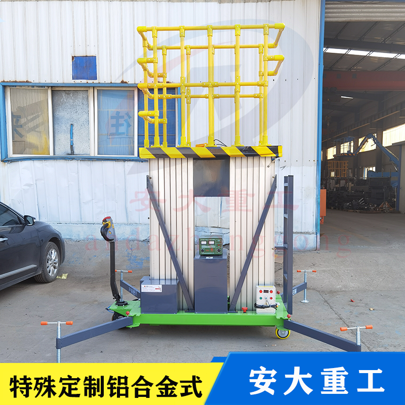 鋁合金式升降平臺(tái)采用高強(qiáng)度優(yōu)質(zhì)鋁合金材料,具有造型美觀、體積小、重量輕、升降平穩(wěn)、安全可靠等優(yōu)點(diǎn),平臺(tái)自身佩戴保險(xiǎn)鋼繩和安全保護(hù)裝置,并能夠上下操作,廣泛用于工廠、賓館。